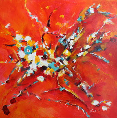 The title of this vibrant abstract says it all! Exuberance! Exuberance expressed with colour, with movement, with energy and life. I love painting abstracts: painting them gives me a feeling of freedom, of joy and of surprise. I don't get tired of looking at this finished artwork...there is always something new to discover and to respond to.